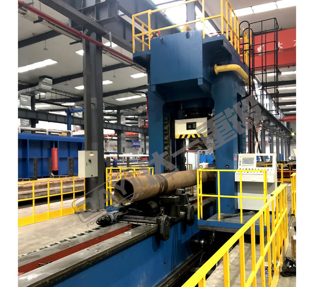 管材校直液壓機是針對大直徑無縫管校直工藝開發(fā)的校直專用設(shè)備,主要用于管材、棒材的校直工藝,同時可配置自動化測量機構(gòu)。