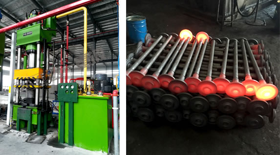 預(yù)墩機(jī)、擺輾鍛造機(jī)是我公司針對(duì)汽車半軸相關(guān)產(chǎn)品獨(dú)特開發(fā)的特種成形設(shè)備,是國內(nèi)先進(jìn)的節(jié)能、節(jié)材、少無切削及機(jī)電一體化的高科技?jí)毫Τ尚卧O(shè)備。該設(shè)備具有投資小、耗能低、易維修、操作簡(jiǎn)單等優(yōu)點(diǎn),輾壓力僅為常規(guī)鍛造的1/15-1/10,較普通鍛錘類設(shè)備具有效率高(提高3倍以上)、加工零件精度高、節(jié)約原材料、噪音低、振動(dòng)小等優(yōu)點(diǎn)。自擺輾鍛造機(jī)在我國正式生產(chǎn)和推廣以來,現(xiàn)已為汽車半軸等生產(chǎn)企業(yè)和必備鍛造制坯設(shè)備,并為我國汽車半軸的鍛造加工做出了巨大的貢獻(xiàn)。